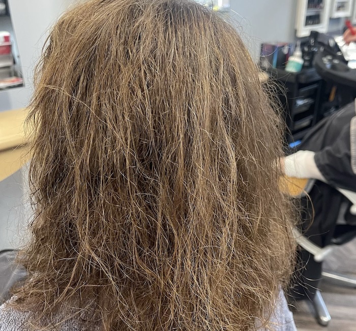 The stylist’s hair looks worse for wear