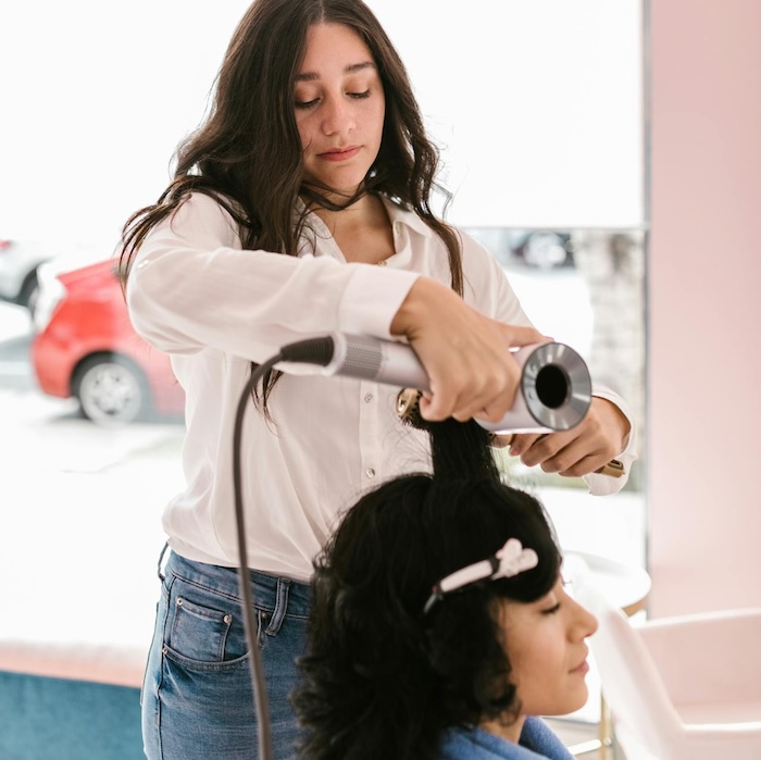 The stylist seems distracted